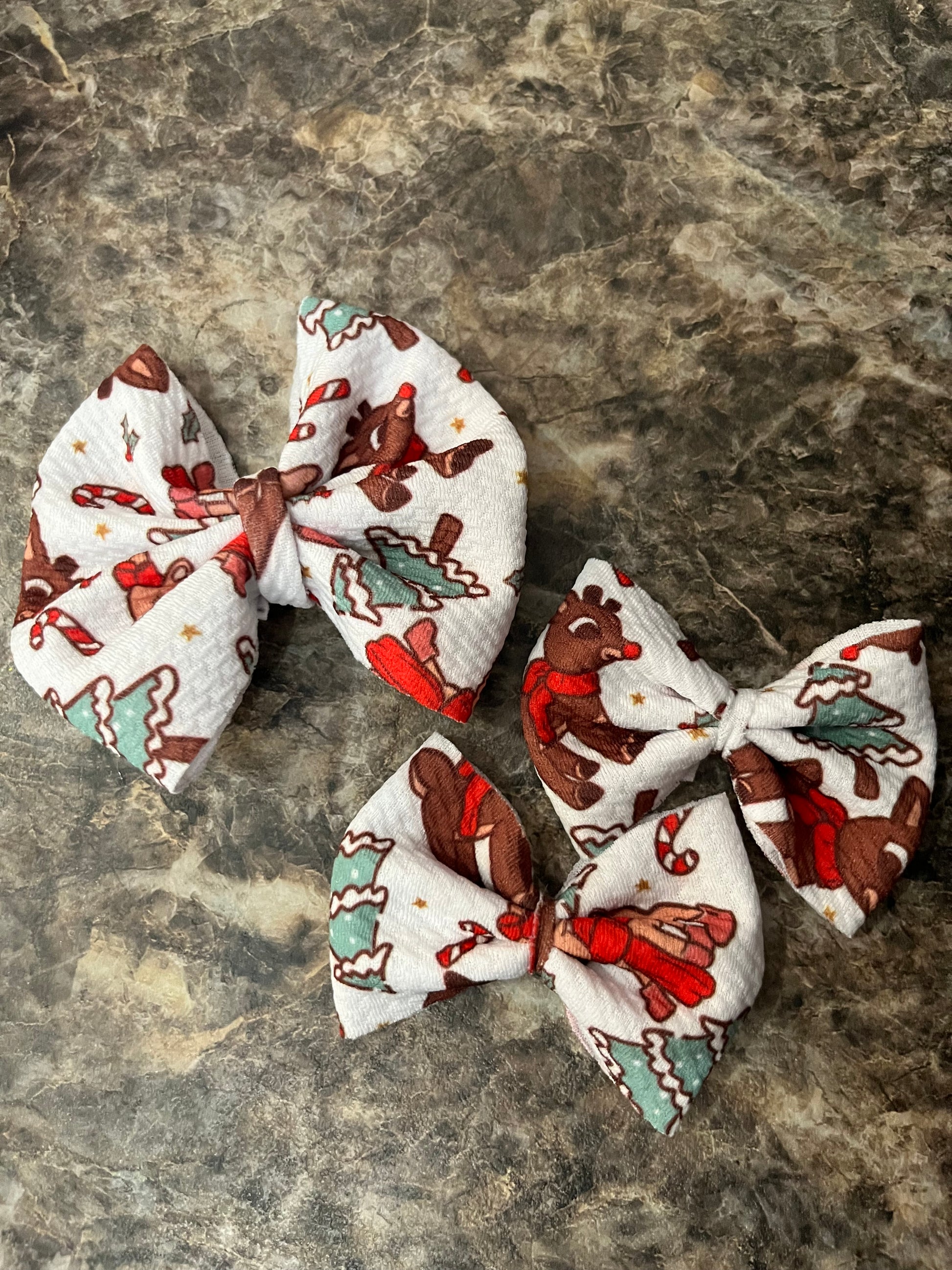 Add a playful touch to your holiday outfits with Rudolph's bow. This fun and festive bow is a perfect addition to your Christmas outfits that need some extra jolly flair. Spread some cheer this season with Rudolph!